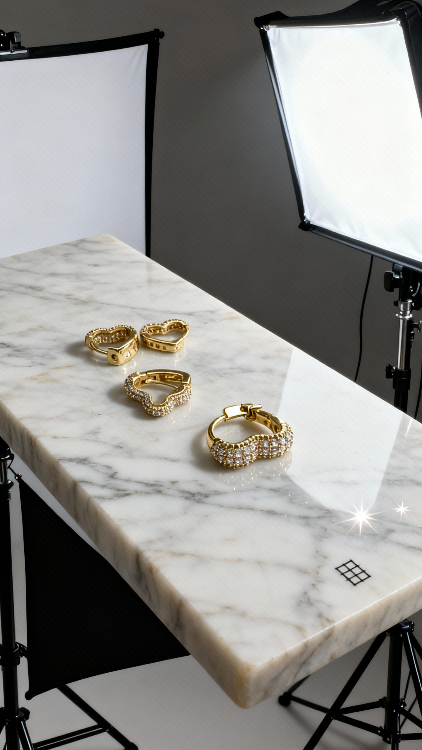 Tre mini–hoop a forma di cuore in finitura dorata, in tre misure coordinate. Il profilo è luminoso e una parte è impreziosita da micro strass che donano brillantezza senza esagerare. Chiusura a scatto comoda e sicura. Indossali singoli, in coppia o in ear stack per creare combinazioni romantiche e moderne.