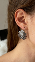 Volume pieno e luce a 360°: il motivo a nodo intrecciato con superfici martellate in finitura argento specchiata crea riflessi ricchi e sofisticati. Perfetti per dare carattere a camicie, blazer e knitwear. Chiusura a perno con farfallina; peso bilanciato per un comfort quotidiano.