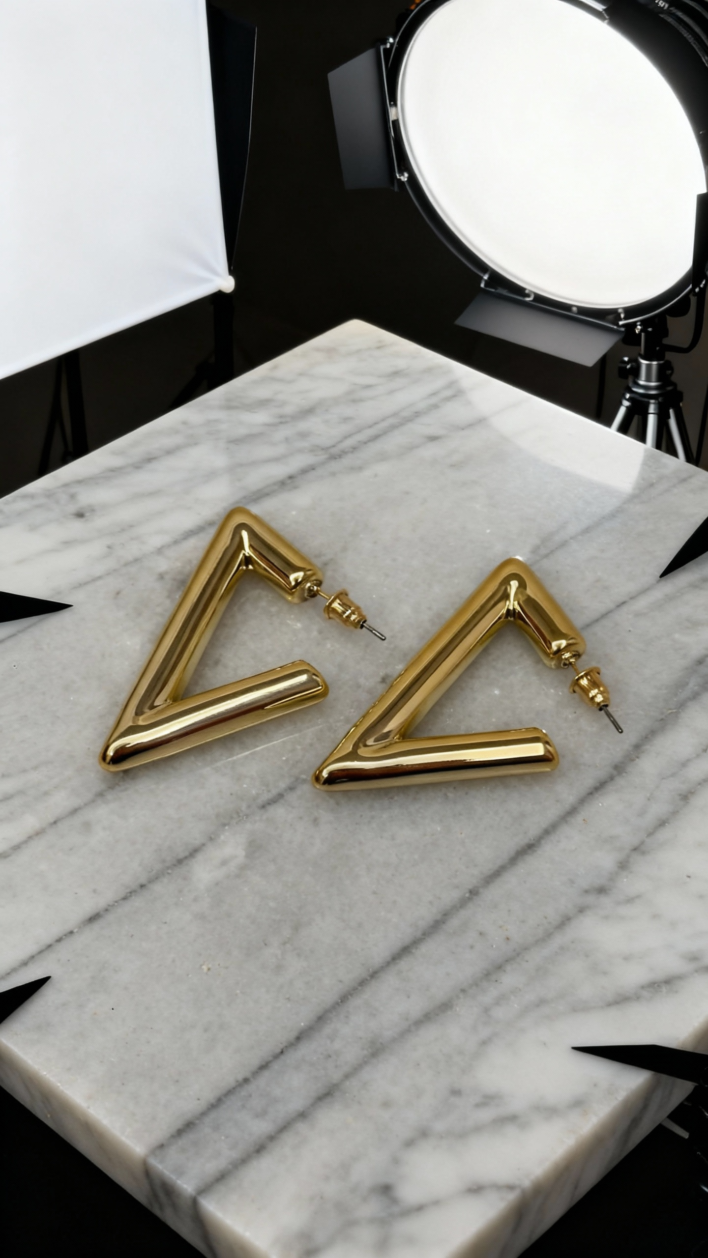 Grafici e contemporanei: il profilo a V oversize con volumi morbidi e finitura a specchio illumina il viso con carattere deciso. Perfetti per dare un twist a look minimal o blazer serale. Chiusura a perno con farfallina; design leggero, comodo da indossare tutto il giorno. Prezzo accessibile, effetto high-gloss immediato.